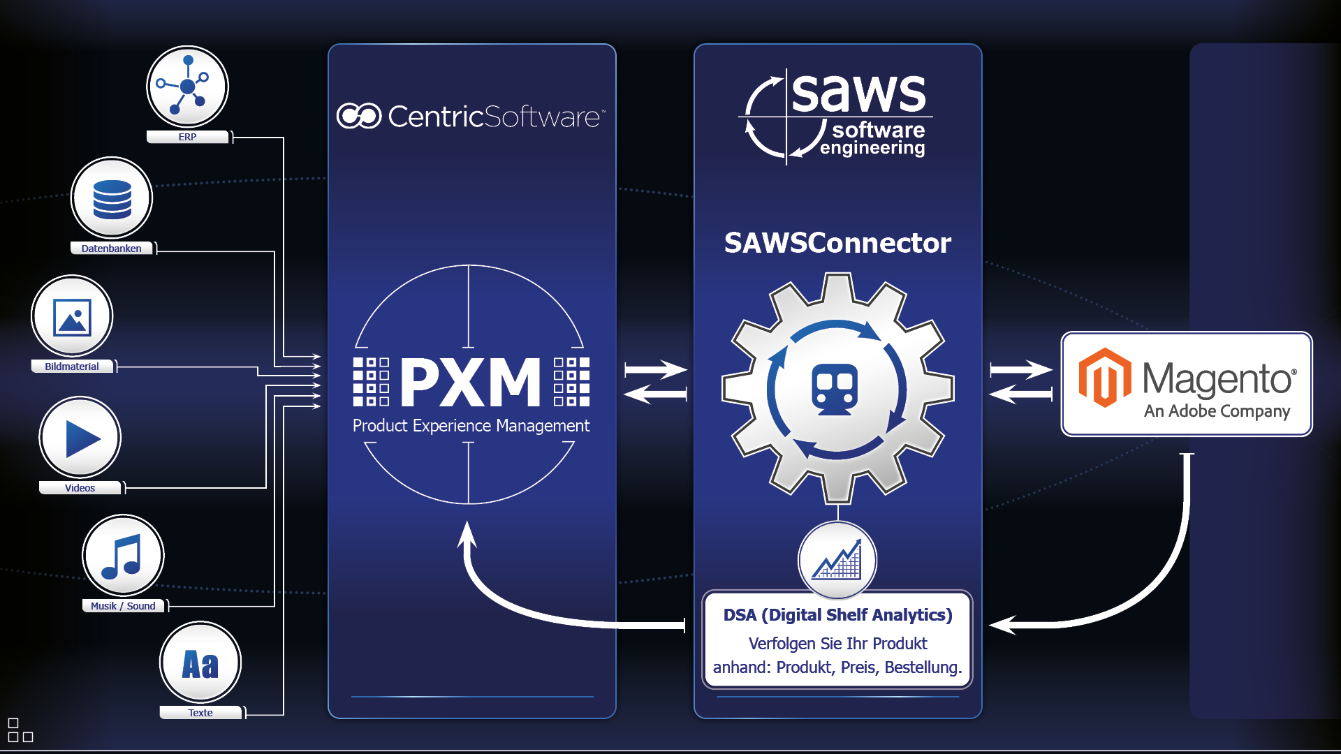 Magento ist die weltweit führende eCommerce-Plattform, auf die führende Einzelhändler, Marken und Hersteller im B2C- und B2B-Bereich vertrauen. Anerkannt als Top-Performer in den 2015 Internet Retailer Top 1000, B2B 300 und Europe 500-Listen, ermöglicht die Plattform flexible eCommerce-Lösungen. Mit dem Magento Connector können zentral gespeicherte Produktdaten mühelos aus PIM-System in Magento übertragen werden, während sich der Prozess für alle Ihre eCommerce-Shops automatisiert. Diese leistungsstarke und vielseitige Lösung stellt sicher, dass Ihre Magento-Shops aus einer einzigen Datenquelle operieren und optimiert somit die Produkt- und Bestandsverwaltung in Ihrem Unternehmen.