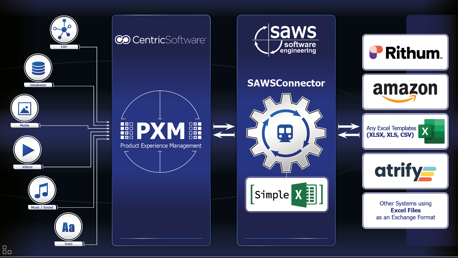 Rithum, Amazon, Atrify, and other systems using Excel files for data exchange.